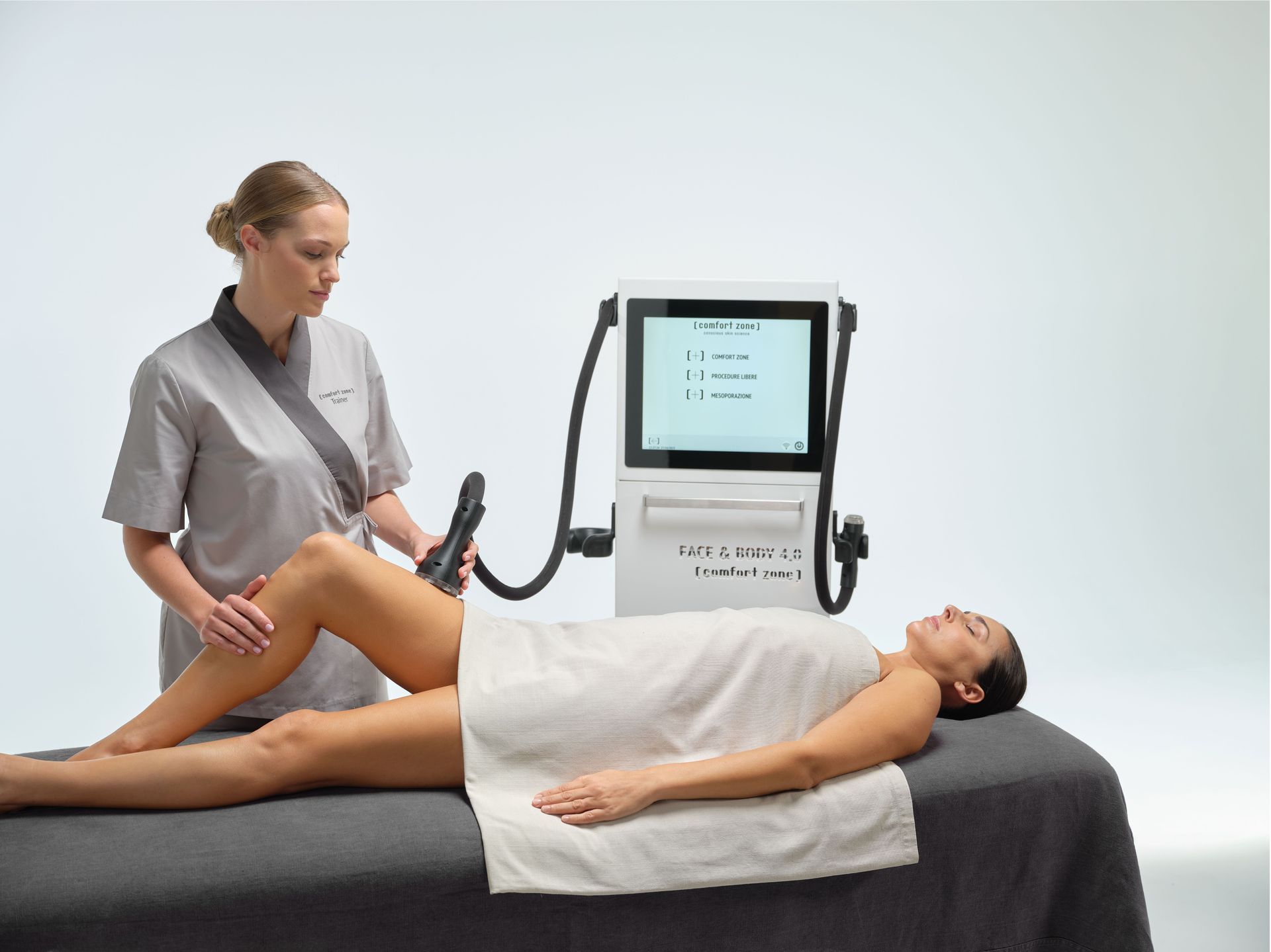 Grazie al presso-massaggio intelligente Comfort Zone, la sensazione è immediata: un profondo benessere che si traduce in gambe leggere, una pelle più uniforme e una visibile riduzione degli accumuli localizzati, seduta dopo seduta.